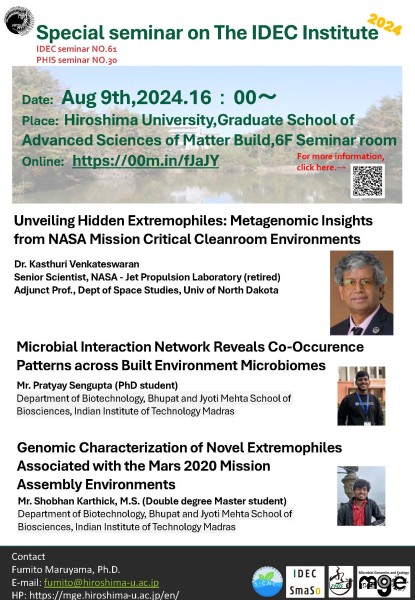 2024/08/09: Seminar, Dr. Kasthuri Venkateswaran, Univ of North Dakota