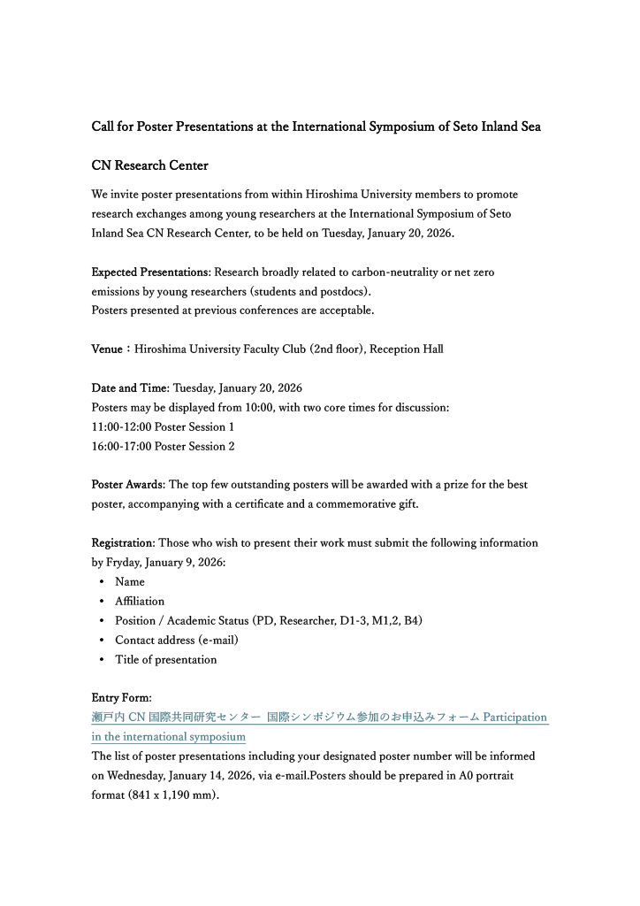 Hiroshima University, International Symposium 2026 - Poster Presentation